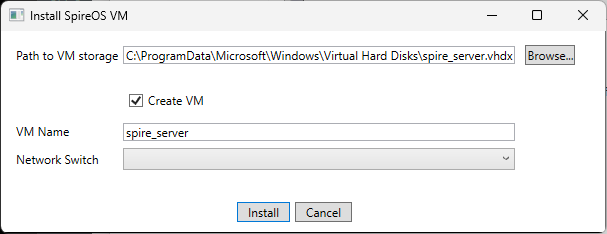 On the Install SpireOS VM screen: